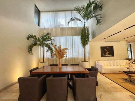 Al entrar a la casa encontrarás un recibidor lleno de luz que te conecta a una sala y comedor con doble altura.