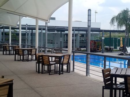 Fraccionamiento privado con andadores, alberca y áreas verdes.