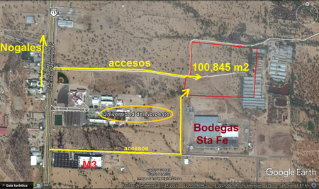 Terreno de 5 hectáreas salida norte de Hermosillo a Nogales ubicadas a un costado de las Bodegas de santa fe atras de la UVM, buen acceso, con servicios basicos, industria ligera, poligono regular