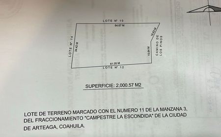 Excelente oportunidad para adquirir tu terreno campestre en Fracc. Privado con acceso controlado 24/7 ubicado a 35 minutos de Saltillo.