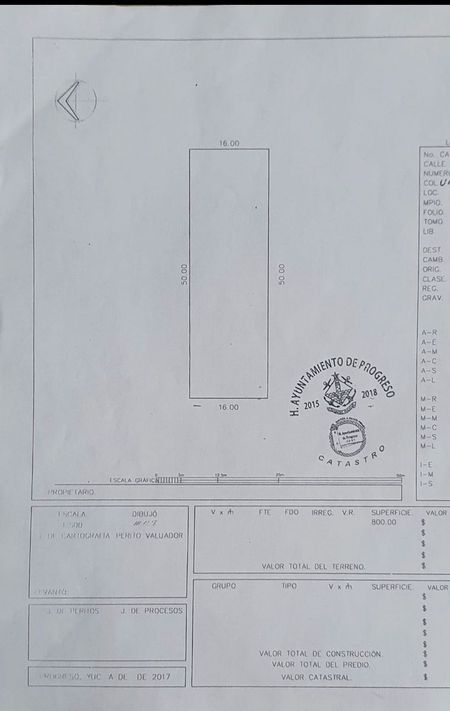 El terreno mide 16x50=800m2