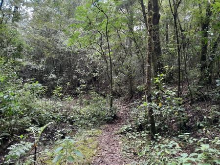 Es un terreno con desnivel moderado, con bosque y espacios despejados para construir, colinda con un pequeño arroyo y esta dentro de un fraccionamiento con vigilancia las 24 horas
