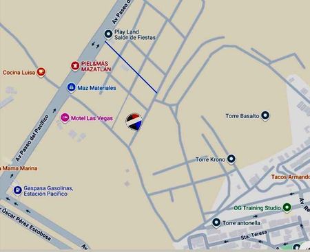 El acceso es cómodo y directo a través de la calle que conecta con Avenida Paseo del Pacífico, justo a la altura del salón de eventos infantiles Playland. La zona está proyectada como un nuevo polo de crecimiento habitacional en Mazatlán, gracias a la consolidación de desarrollos verticales con alta demanda.