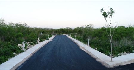 Este es un conjunto residencial de 78 lotes, ubicado en Yaxkukul, localidad a unos 3 minutos de la carretera Mérida - Motul