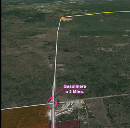 El terreno cuenta con 422 metros con frente de carretera y con las siguientes distancias a empresas y puntos importantes :