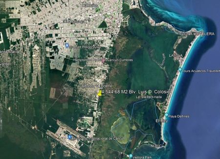 4,544 m2 de Terreno sobre carretera Cancún-Playa (Blv. Luis D. Colosio) Cancún