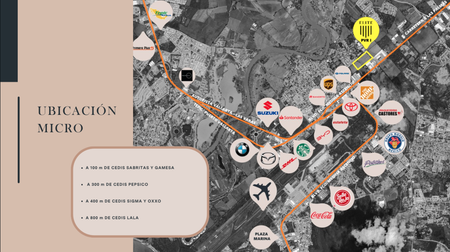 * Ubicaciones estratégicas en toda la zona metropolitana de Guadalajara con acceso a servicios, mano de obra y movilidad para unidades de carga pesada.