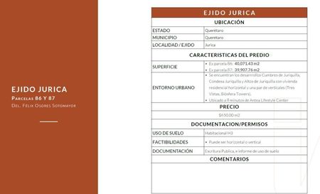 EXCELENTES TERRENOS HABITACIONALES ESCRITURADOS CON USO DE SUELO HABITACIONAL H3 (VERTICAL U HORIZONTAL), UBICADOS EN EJIDO JURICA SOBRE FRAY JUNÍPERO SERRA, PRÓXIMO AL ENTRONQUE CON LIBRAMIENTO NORPONIENTE.