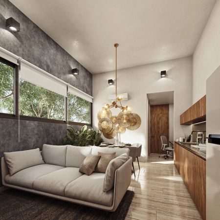 Desarrollo compuesto por dos departamentos de una habitación y doce departamentos de dos habitaciones enfocados en la comodidad y el estilo de vida de cada residente, quienes podrán disfrutar de una serie de beneficios como: caseta de vigilancia, accesos controlados, estacionamiento personal techado y roof top.