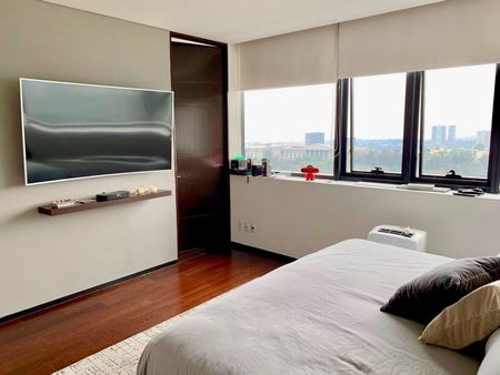 Increíble departamento de dos pisos ubicado en el Piso 19 del desarrollo "CITY SANTA FE, TORRE BARCELONA" con espectacular vista al parque La Mexicana. 185 m2, 3 recámaras, la principal con baño y vestidor, 3.5 baños, Cuarto de TV, 2 lugares de estacionamiento y bodega. Vigilancia 24/7. Con las mejores amenidades en áreas comunes como alberca,, spa con vapor y sauna, gym, salón de usos múltiples, salón de adultos, áreas verdes, juegos infantiles, sky lounge. Enfrente del Centro Comercial Santa Fe sobre la Av. Principal de Santa Fe..
