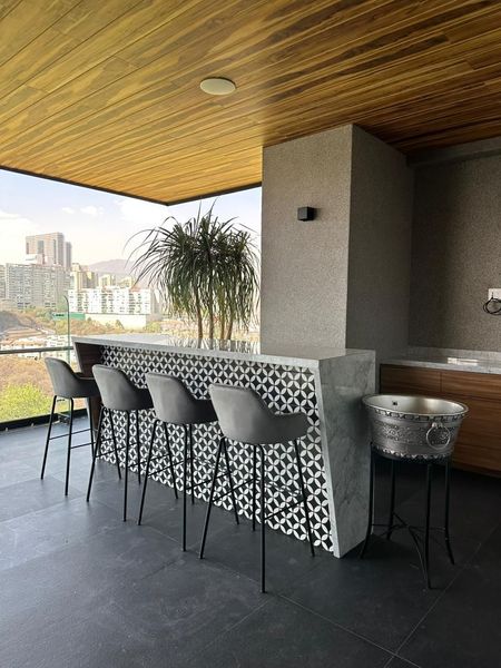 Vendo o rento departamento en Roma, bosque real a estrenar con muy lindos acabados. Cuenta con una amplia terraza con vista al campo del golf . Tiene tres recámaras cada una con su baño y vestidor, cocina, sala, comedor, family, lavandería y áreas de servicio. Muy buenas amenidades, cuenta con alberca cubierta, chapoteadero, gym, salón lounge, salón de fiestas, business center, ludoteca, cancha de squash, jardín con asadores y muchas cosas más.