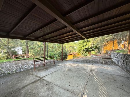 3 Terrazas amplias con techo de madera de parota y teja tradicional Una de ellas con opción de cochera techada para 3 autos.