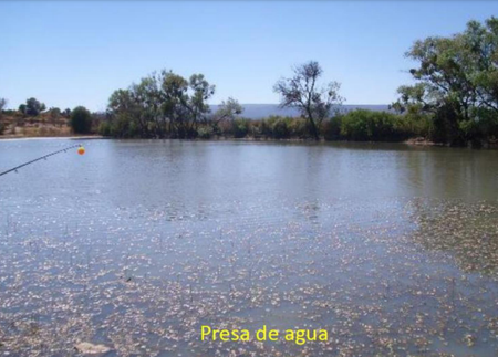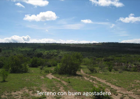 También el terreno cuenta con una Noria y 2 presas, entre los cerros se junta el agua y sirven como corriente para realizar contrapresas para tener más agua en el predio. El rancho cuenta con un manantial donde brota el agua durante todo el año y cuenta con 4 vasos de captación, por lo que el ganado nunca pasa sed. Cuenta con el avance de la perforación de un pozo para la extracción de agua con tubería de 8 pulgadas y la capacidad de 3 posos más distribuidos a lo largo del terreno.