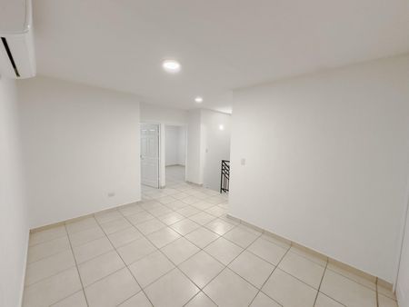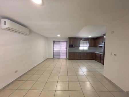 Sala, comedor, cocina integral con cubierta de granito, espacio de lavado, baño de visitas.