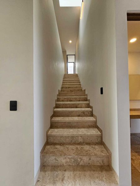 En la planta alta, encontrarás dos recámaras iluminadas naturalmente, cada una con un ambiente cálido y acogedor. El cuarto de televisión también está en esta planta, acompañado de un amplio clóset de blancos, ideal para mantener todo en orden y accesible.