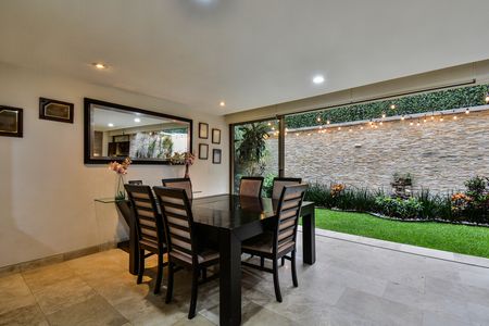 EN CONDOMINIO DE 5 CASAS CON UBICACIÓN PRIVILEGIADA POR SU CERCANÍA CON VÍAS PRINCIPALES, Y SU CERCANÍA CON EL CENTRO DE COYOACÁN Y DEL PARQUE XICOTÉNCATL. En calle tranquila y silenciosa, esta casa te ofrece un proyecto muy completo y muy funcional. En planta baja cuenta con sala y comedor con salida al jardín de 35 m2, y cocina abierta, lo que te permite integrarlo todo para tus eventos familiares y sociales. En planta primer nivel, 3 recámaras cada una con baño, la principal con vestidor, y un estudio. En planta alta, acogedora sala de tv con salida a terraza con una pérgola y velaria , medio baño de visitas, cuarto de lavado y un patio de servicio. Tiene 3 estacionamientos, dos techados y un tercero con eleva autos.