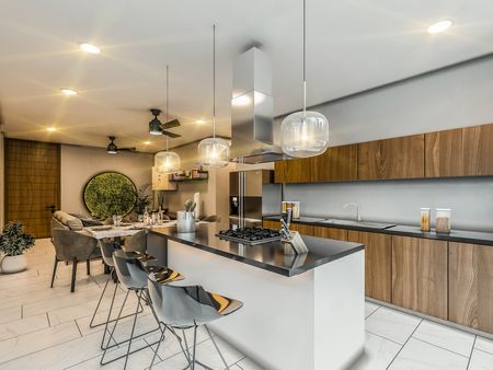 Se entrega con cancel fijo de cristal en baños, parrilla y carpintería de cocina