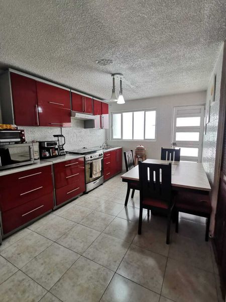 La cocina integral está equipada con gabinetes de calidad y electrodomésticos modernos, lo que la convierte en un lugar funcional y atractivo para preparar deliciosas comidas.