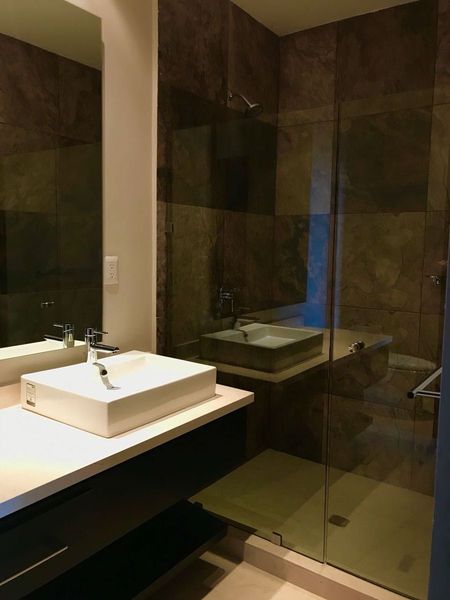 Amplio departamento de lujo de 162.70m2, con una altura de 2.70m2, lujosos acabados con pisos de porcelanato de 60 x 60cm. Preciosa vista a la cañada. Cuenta con 3 recámaras, 2 con vestidor y baño completo con placas de mármol, pisos de madera de ingeniería y una sala de TV ó tercera habitación con closet y baño completo, amplia sala comedor con terraza, cocina equipada con gabinetes al alto brillo, lavavajillas y cubierta de granito. Cuenta con tres lugares de estacionamiento totalmente independientes, amplia bodega, gran lobby con recepción, cancha padel tenis, jardines, gimnasio de 360mts2 con area zen, salón de usos multiples de 360m2, alberca semi olímpica con vista infinita dos chapoteaderos laterales, restaurante - cafeteria y sala de cine.