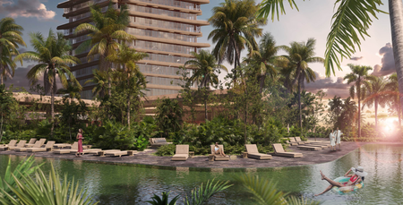 Cuenta con 3 pisos de amenidades y vista al mar.