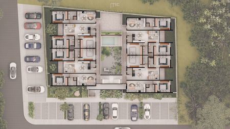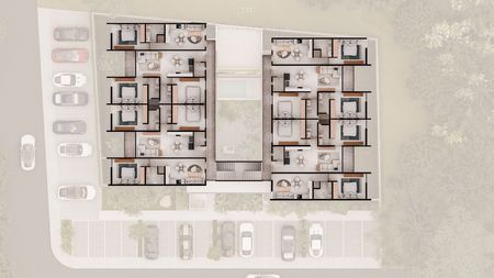 Desarrollo de 24 departamentos distribuidos en tres niveles.