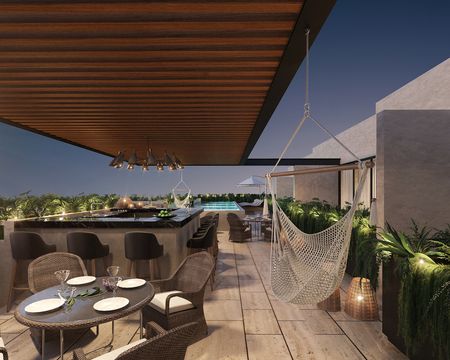 Gimnasio, Bar/terraza, alberca, wifi, elevador, cámaras de vigilancia, elevador, caseta de vigilancia, lobby, cámaras CCTV
