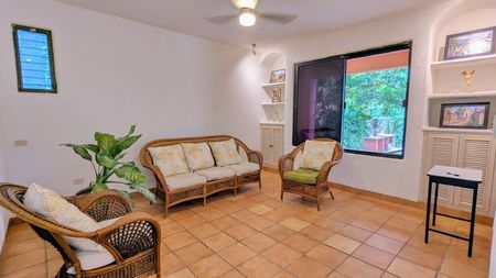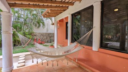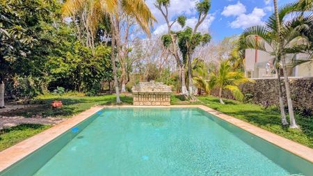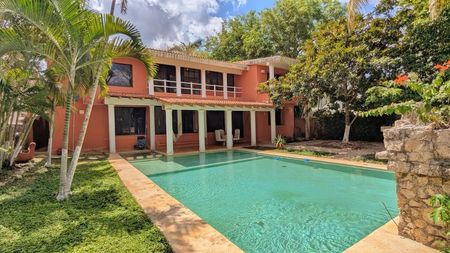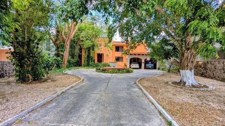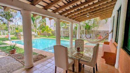 Esta casa en venta con diseño mexicano está dentro del Club de Golf la Ceiba. Esta propiedad es una gran oportunidad de compra ya que tiene amplios espacios, mucha luz y un gran jardín con alberca y colindancia con el campo de golf atributos que la hacen muy especial.