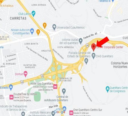 Orbit Corporate Center es un desarrollo de alto nivel con 8 niveles de oficinas, 8 niveles de estacionamiento, un lobby de lujo, comedor panorámico para ejecutivos, business center, 4 locales comerciales y 46 cajones para visitas. Se encuentra a solo 1 km de Centro Sur y muy cerca del corredor industrial más importante de Querétaro, con salida directa a la CDMX.