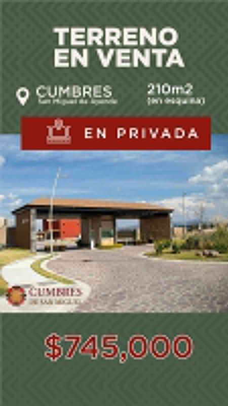 Descubre el terreno ideal para tu proyecto en una de las zonas más exclusivas de San Miguel de Allende: Privada San Pedro en Cumbres de San Miguel, Primera Etapa. Con una superficie de 210 metros cuadrados, este terreno destaca por su excelente ubicación en esquina, brindando mayor privacidad y opciones de diseño.