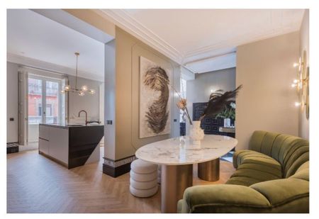 En el tercer piso de un hermoso edificio histórico de 1910 con impresionantes vistas a la ciudad en el barrio más de moda de la capital a pocos pasos del Hotel Four Seasons y la Galería Canalejas.