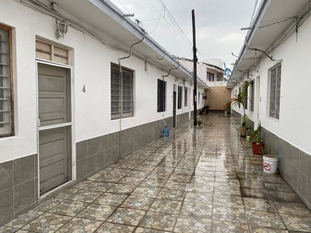 Cuenta con acceso peatonal para ingreso a área de departamentos, con reja y pasillo en área común. 10 departamentos en total; cada uno con 2 recámaras con clóset, 1 baño completo, cocina, patio, cuarto de lavado y tinaco.