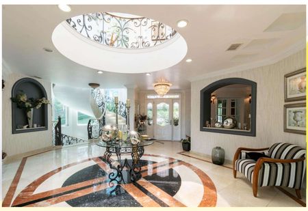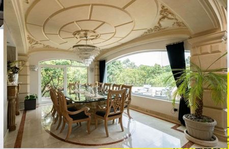 Distribuida en tres niveles, la casa ofrece una sala de estancia impresionante con triple altura, ideal para disfrutar de momentos familiares o recibir invitados. Los pisos están revestidos con mármol de lujo, aportando un toque de sofisticación y calidad a todo el hogar.