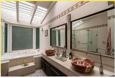 La propiedad también ofrece tres cuartos de servicio y cuatro boilers, asegurando comodidad y funcionalidad. La calefacción warm-up en los pisos de la recámara principal y la segunda recámara brinda calidez en los días más fríos.