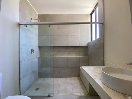 Recámara principal con closet vestidor y baño completo
