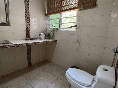 Tiene aparte un salón o bungaló independiente con comedor, cocina , medio baño y bodega.