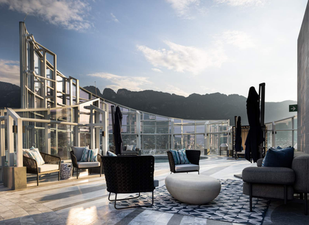 Piso 35: Terraza, Alberca Yin, Bar exterior, Asoleadero y cabañas.
