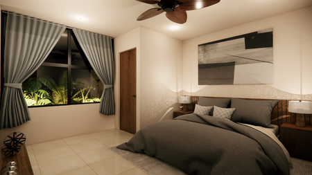 Una recámara principal con clóset vestidor* y baño completo.