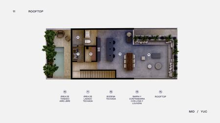Roof top: Área tendido al aire libre, área de lavado techada, bodega techada, rooftop, barra y contra barra con losa y louvers