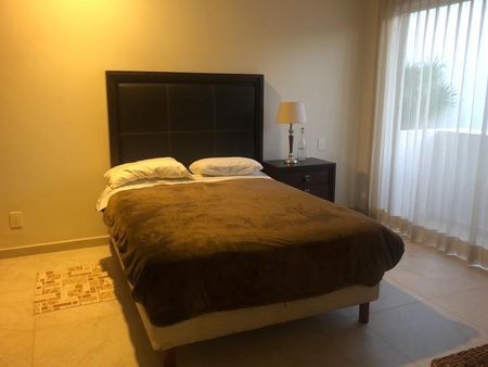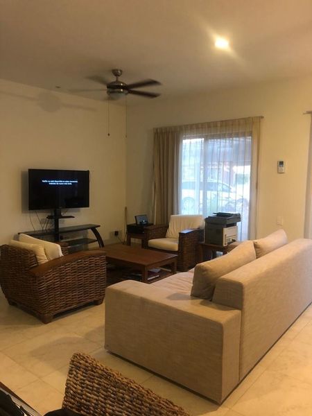 Precioso town house en planta baja, cuenta con amplio jardín en la parte trasera, mosquiteros en terraza, ventiladores y mini splits en recamaras y área social, cortinas, cuarto de servicio con baño, tres recamaras, dos y medio baños.