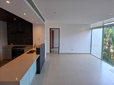 Con muy amplia cocina y vistas preciosas a la naturaleza, este departamento de 3 recámaras es muy amplio y bien iluminado. Tiene cuarto de servicios con baño de servicio completo, aire acondicionado central, mosquiteros, estufa de gas y campana.